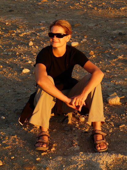 fluessiges Magma trat an die Oberflaeche. An dieser Stelle woelbte es sich zum Brukkaros auf. Der Berg explodierte durch die Ueberhitzung der Grundwassers und der Krater entstand. Wir haben hier einen der schoensten Abende unserer Reise genossen: gegrillt, Wein getrunken