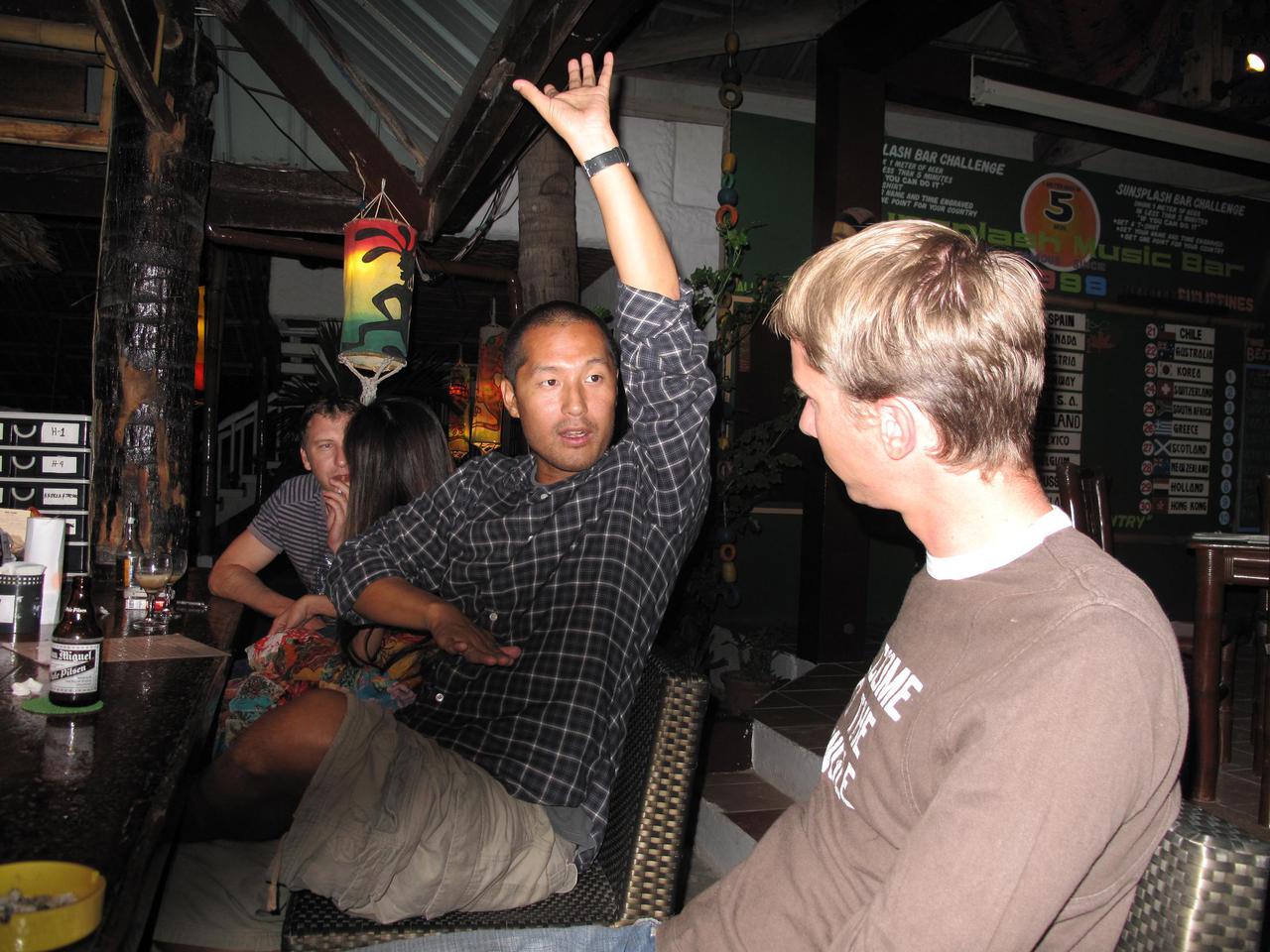 Der Bootscaptain meinte das Cocobana-Resort gehoere einem Schweizer und vielleicht wuerde er uns ein Discount geben. Und kurz darauf kam uns auch schon "Freddy", (the swiss guy) entgegen. Er meinte dass nur noch ein Cottage frei waere was normalerweise 2300P pro Nacht kosten wuerde. Da uns dies aber zu teuer war, einigten wir uns auf eine Nacht in diesem Deluxe-Cottage fuer 1500 Pesos, und die folgenden Naechte in einem frei werdenden Standard-Bungalow fuer 1000 Pesos pro Nacht. Wir akzeptierten und konnten uns schon bald mit einer warmen Dusche vom Salzwasser befreien.
