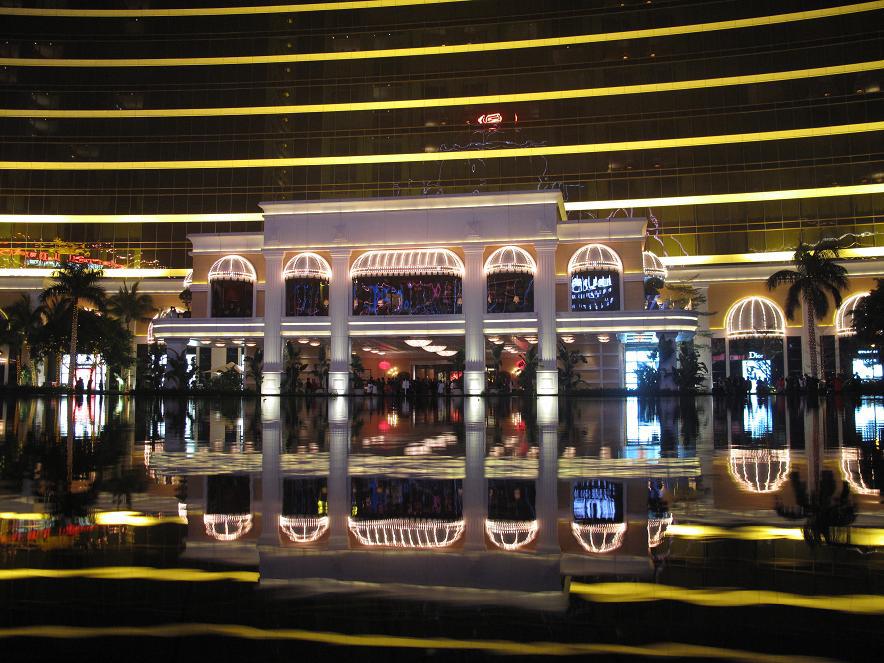 Der Eingangsbereich des "Grand Lisboa", wo wir am Vorabend schon gespielt hatten. Alle Lichter bewegten sich staendig...