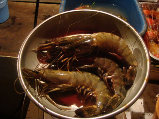 Am unserem zweiten Abend an der White Sand Beach wollten wir nun mal richtig guten Seafood essen. Ueberall am Strand gibt es diverse schoene Restaurants die frische Fische, Crevetten, Krebse usw. schon auf Eis ausbereitet anbieten. Wir entschieden uns fuer "Tigerprawns" die wirklich sehr gut schmeckten, ist aber auch klar... nirgendwo in der Schweiz haben wir die Moeglichkeit so frische Crevetten zu essen. Serviert wurde das ganze mit einer Kartoffel oder Reis, einem guten Salat und einer tollen scharfen Sauche ! Ein richtiger Genuss... und dies alles natuerlich an einem Tisch direkt am Strand !