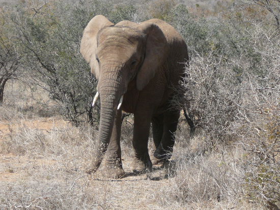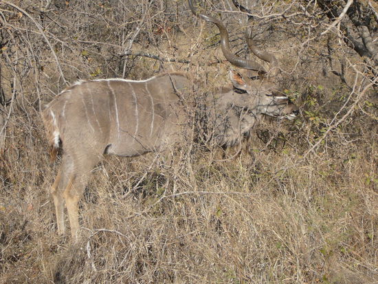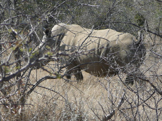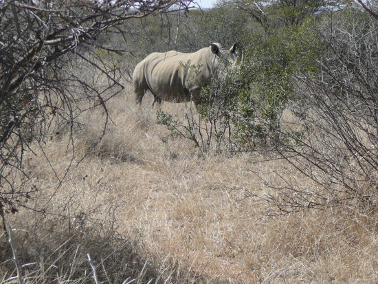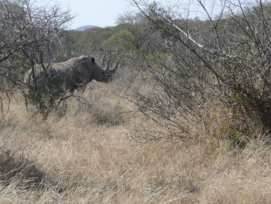 Der Park ist groß, und es leben nur neun Rhinos hier. Die sich heute auch ziemlich gut verstecken. Wir fahren fast den gesamten Park ab, machen somit auch gleich eine komplette Safari und sehen unterwegs fast alle Tierarten, die hier zu bestaunen sind, u.a. Kudus, Impalas, Zebras, Giraffen, Strauße, Elefanten.