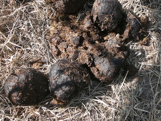 Unser Fährtensucher beugt sich derweil eifrig aus dem Auto und sucht nach frischen Fährten, lässt ab und zu mal anhalten, verschwindet im Busch und kommt stets mit enttäuschtem Gesichtsausdruck zurück. Der meinige ist entsprechend. Irgendwann lässt er aber dann doch alle absitzen, er hat einigermaßen frische Nashornkacke entdeckt, ca. 4 Stunden alt. Woher man das weiß? Genau, man hält die Hand rein und fühlt die Wärme.