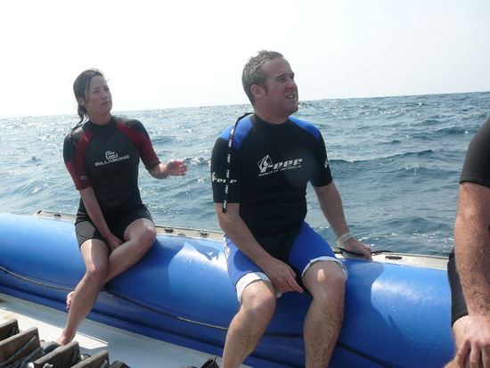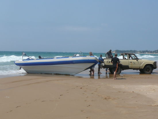Um es vorwegzunehmen, der Trip wird ein Highlight meines Urlaubs. Einige Dinge würde ich aber lieber verschweigen, z.B. dass ich als Einziger Mühe habe, beim Reinschieben des Bootes ins Wasser rechtzeitig ins Bootes zu hechten, bevor es durch die Wellen jagt. Dass ich mich zunächst ängstlich ins Boot hocke bevor mir gezeigt wird wie man vernünftig sitzt, Füße in die Schlaufen am Boden, sich richtig auf den Rand setzen und an den Seilen festhalten. Das geht auch tatsächlich viel besser und nach 5 Minuten macht es richtig Spaß, mit einer Höllengeschwindigkeit durch die unruhige See zu rasen. Auch im Wasser kann ich mit den Anderen nicht mithalten und muss jedes Mal wie ein nasser Sack von Andrew oder dem Bootsführer ins Boot gezogen werden.