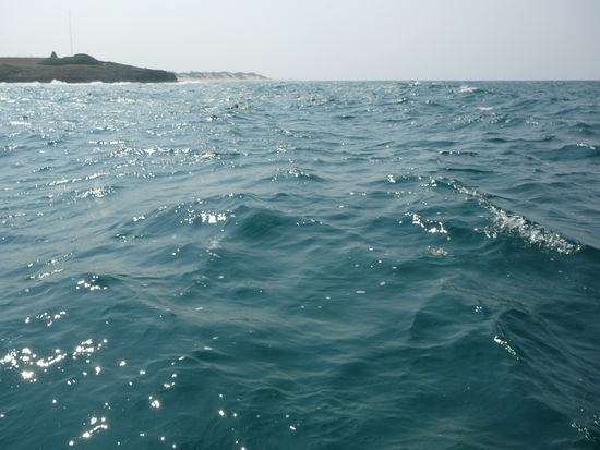 Auch einige Delfine tauchen auf. Die haben aber heute kein großes Interesse an den seltsamen Gestalten, die hier herumpaddeln und schwimmen weiter. Sie sind für uns zu schnell. Ich zähle nicht mehr mit, wie viel Walhaie wir schließlich sehen und mit wie vielen wir schnorcheln. Es mögen 15, 20, oder 25 sein, jedenfalls außergewöhnlich viele, meint Andrew. Wir haben heute richtig Glück.