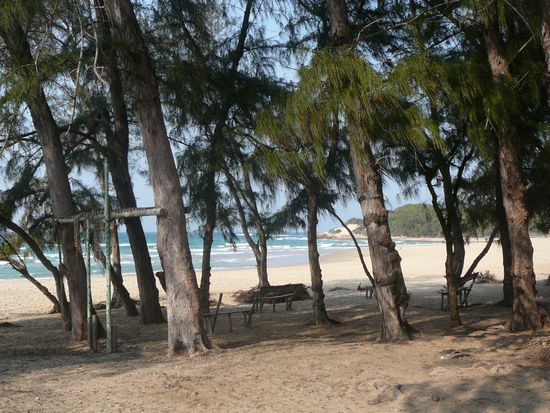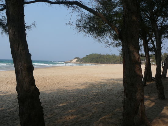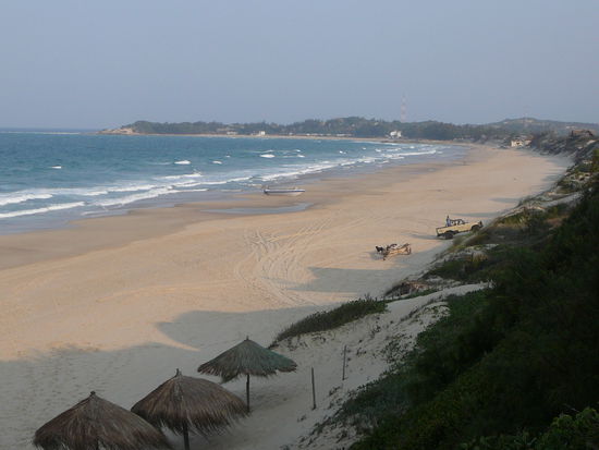 Zurück gehe ich am wieder fast menschenleeren Strand bis zum "Fatima's". Dort gibt es heute aber kein Bier sondern ein Ticket. Für den Bus nach Maputo. Ich frage zweimal nach der Abfahrtzeit. Und habe richtig gehört. 4 Uhr morgen früh. Meine Sorge, ob ich meinen Wecker hören werde, bleibt nicht die einzige. Am Abend im Dünenrestaurant kommt Elisabeth, eine Deutsche, im Schlepptau eine Italienerin und eine Spanierin, und fragt ob ich derjenige wäre, der morgen, besser heute Nacht, mit dem Bus fahren will. Hätte sie von der Rezeption gehört. Die drei wollen auch nach Maputo und fragen ob wir zusammen aufbrechen wollen. Sie haben etwas Angst und würden sich über männlichen Begleitschutz freuen. Sie erzählen, dass gestern Abend zwei Mädchen auf dem Weg von Dinos Bar zurück zur Unterkunft im Palmenhain überfallen worden sind. Nichts ganz Schlimmes. Geld weg, aber trotzdem. Zusätzlich wurde dann noch ein Motorrad aus der bewachten Lodge gestohlen und die Security-Leute sind kurzerhand verhaftet worden und sitzen nun im Gefängnis. Nur ein Neuer wurde bisher engagiert, der uns aber nicht begleiten kann, da er ja auf die Lodge aufpassen muss. Mein Beschützer-Instinkt ist sogleich geweckt, allerdings bin ich mir nicht sicher, ob ich nicht als Erster bei Gefahr die Flucht ergreifen würde.