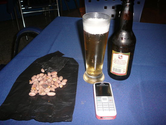 Mein Stammlokal für den späten Nachmittag, das "Crystals", erreiche ich trotz des Orkans, der sich schnell wieder legt. Es liegt strategisch günstig an der Av 25 Julho, in der Nähe einiger Bürogebäude und einer großen Minibushaltestelle. Das ist die beste Unterhaltung, im Straßenlokal sitzen, bei einem Bier und Leute angucken. Auch am Tisch ist immer etwas los. Die Kellnerin verirrt sich zwar selten hierher, dafür tauchen ständig Zeitungsverkäufer, Souvenirhändler, Erdnussverkäufer und natürlich die Jungs mit den gelben Leibchen auf, die Prepaid Karten von Mcel anbieten. Das funktioniert genauso wie bei uns, Karte kaufen, Nummer aufrubbeln, Nummer ins Handy eingeben und - genau, Karte einfach wegwerfen.