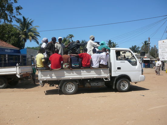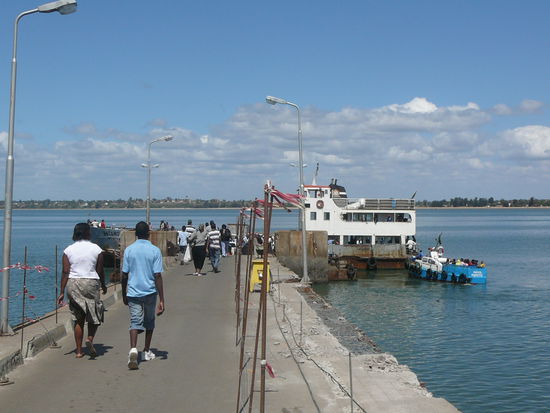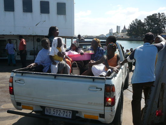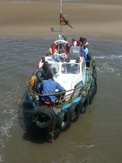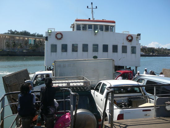 Nach dem Mittagessen steht das letzte Sightseeing in diesem Urlaub an, Catembe, ein kleiner Fischerort, zu dem man mit einer ziemlich alten Autofähre gelangt. Die Überfahrt ist eher unspektakulär, das Beladen aber sehenswert. Zentimetergenau werden die Pickups und Geländewagen an die vorgesehenen Plätze bugsiert: Mit "normalen" Autos kommt man drüben am anderen Ufer eh nicht weiter.