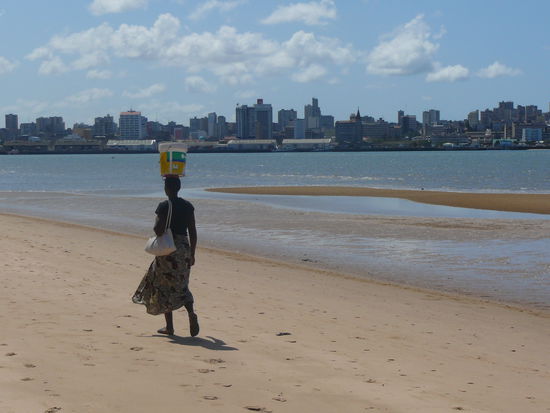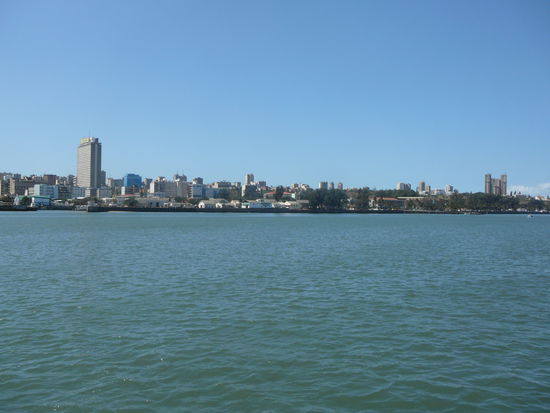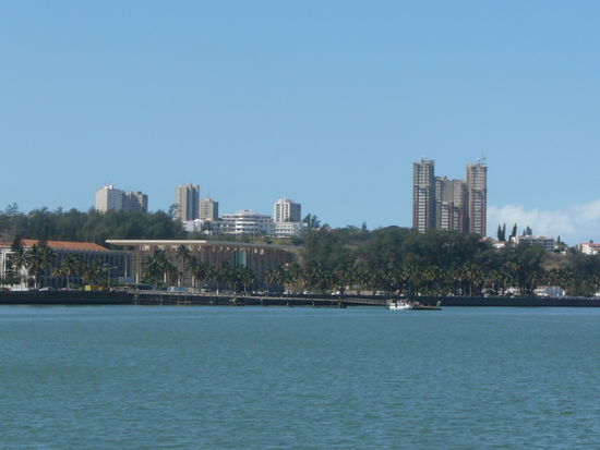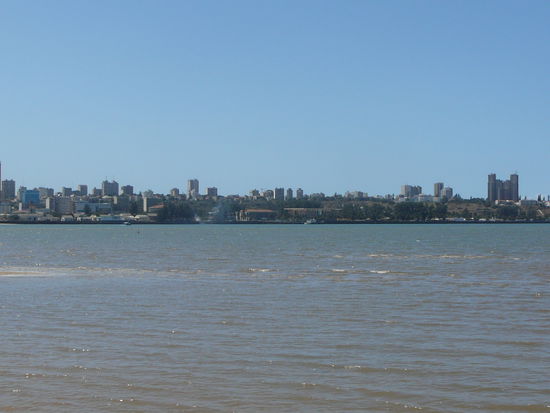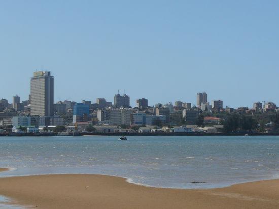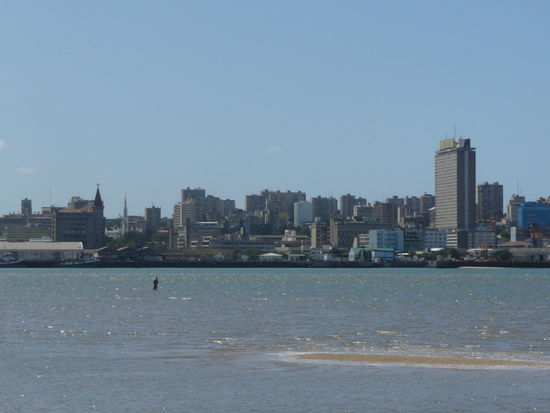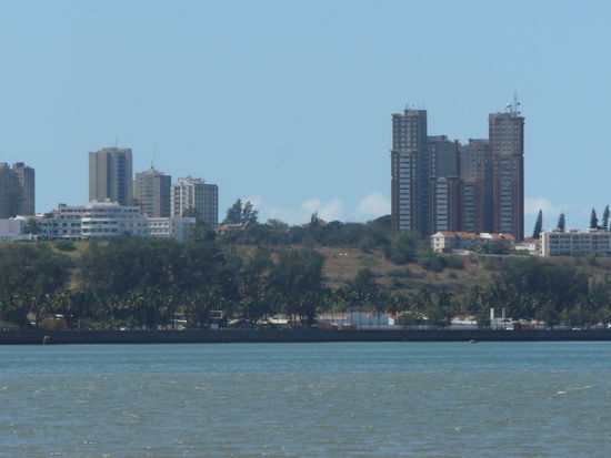 Schon der atemberaubende Blick auf die Skyline von Maputo lohnt den Trip, ein Traum für Fotografen, noch dazu bei diesem Kaiserwetter, wolkenloser blauer Himmel, bestimmt über 30 Grad, die hier am Wasser sehr gut zu ertragen sind. Mittlerweile kenne ich alle markanten Gebäude, die sich vor mir auftürmen.