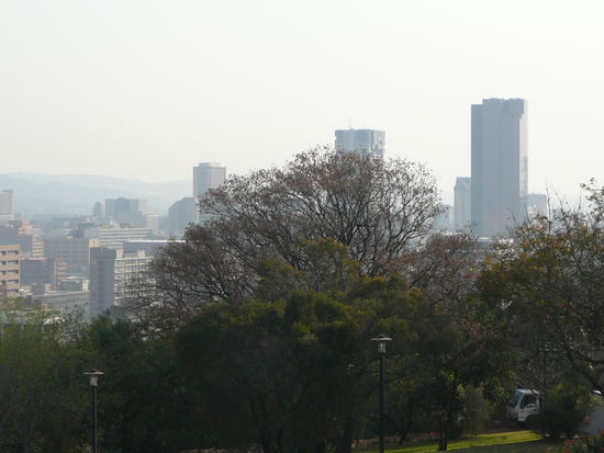 Für beide Tage in Joburg hatte ich Touren gebucht. Die erste fällt aber ins Wasser. Ich wollte nach Pilanesburg, einem Nationalpark zwei Fahrstunden entfernt, wo man u.a. die Big Five sehen kann. Leider bin ich der einzige Interessent und die Tour wird abgesagt. Stattdessen mache ich eine Halbtagestour nach Pretoria, der Hauptstadt Südafrikas. Mein Guide und Fahrer in einer Person, Abi, zusammen mit seinem Assistenten, Martin, holt mich von der Jugendherberge ab. Wir fahren die etwa 50 KM nach Pretoria, wobei er einige Staus geschickt umfährt und dort lesen wir noch zwei Holländerinnen auf, die tags drauf für ein halbes Jahr in einer Schule unterrichten werden.