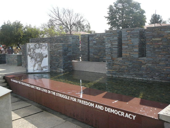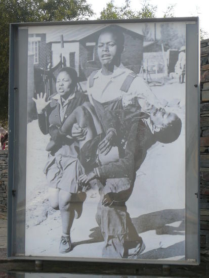 Weiße kommen nur in Form von Tagestouristen vor, die sich an den interessanten Orten drängen, am Hector Peterson Memorial und Museum z.B. Es erinnert an die Vorfälle im Juni 1976, als die Schüler Sowetos gegen die Einführung von Afrikaans als Schulsprache protestierten. Die Polizei ging mit aller Härte gegen die Kinder vor, es gab viele Tote und Verletzte. Als erster starb der 13-jährige Hector, durch Polizeikugeln. Ein Fotograf, der sich in unmittelbarer Nähe aufhielt, hielt fest, wie der sterbende Junge von einem Nachbarssohn Hilfe suchend zu einer Ambulanz getragen wurde, daneben seine verzweifelte Schwester. Das Bild ging um die Welt. Die Schwester ist im angrenzenden Museum angestellt und sitzt gerade auf einer Bank davor. Abi macht uns mit ihr bekannt.