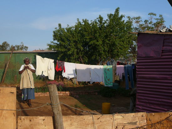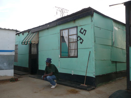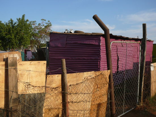 Um aber mit einem realitätsnahen Eindruck vom Leben in Soweto nach Joburg zurückzukehren, gehen wir zum Abschluss in eine Elendssiedlung, "informelle Siedlungen" nennt man sie hier. Die Menschen dieses Viertels leben in Holzbaracken oder Wellblechhütten, selbst hier mit Stacheldraht gesichert. Vielleicht auch gerade hier. Nach Ende der Apartheid kam Euphorie auf. Dann kam die Wirklichkeit und viele Hoffnungen wurden enttäuscht. Wer hungrig ist, wird leichter kriminell.