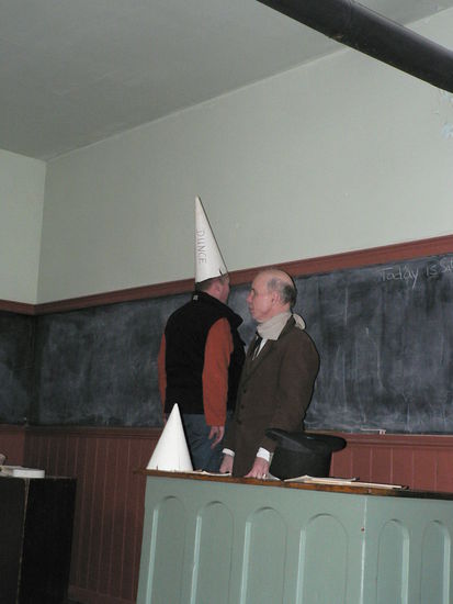 Erinnert ihr auch noch an Albert - der Bruder von Nancy aus der Serie - unsere kleine Farm? Der musste immer in die Ecke, wenn er was angestellt hatte, hier haben sie dem Klassenclown eine Kappe augesetzt und er wurde von der Klasse ausgelacht.