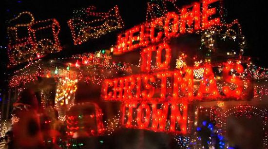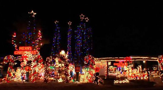 Über 100.000 Glühbirnen sind installiert und dieses Jahr hat wurde ein Kran bestellt um die Lichterkette am 15 m hohem Baum vor dem Haus zu befestigen.