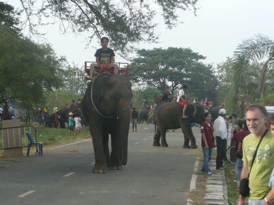 Mit dem Zug bin ich morgens von Bangkok nach Surin gefahren. 6 1/2 Stunden hat es gedauert. Danke an die thailaendische Staatsbahn fuer die schoenen Rueckenschmerzen. Das ist noch wirklich Eisenbahn. Da merkst du jeden Stoss im Ruecken. Aber man will ja nicht jammern. Man bekommt schliesslich fuer den Preis von ca.