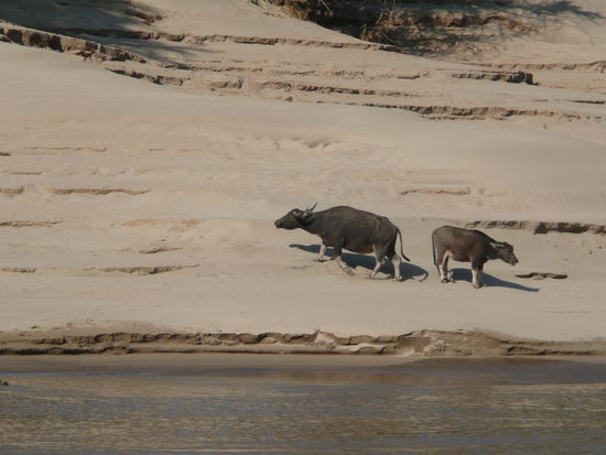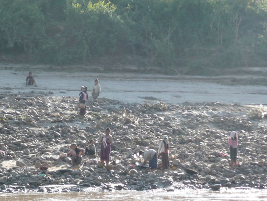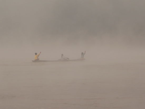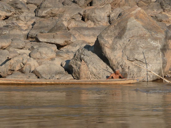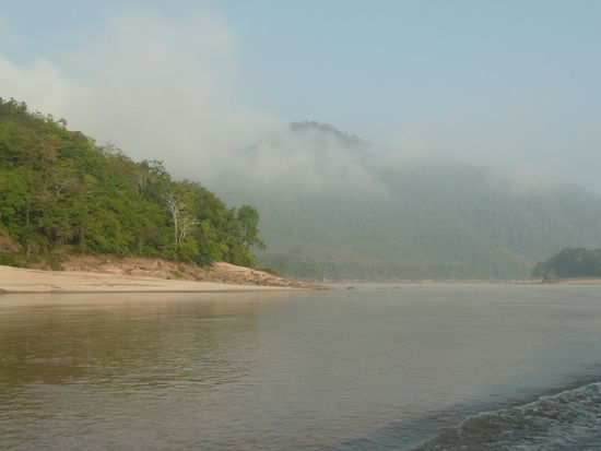 Nach dem sich der morgentliche Nebel gelegt hatte und die Sonne raus kam, wurde es aber angenehm. In die Richtung, den Mekong aufwaerts, fahren nicht so viele Leute. Eigentlich fahren die meisten ueber Nordthailand den Mekong runter. Wir waren nur 15 Leute. Also sehr angenehm.