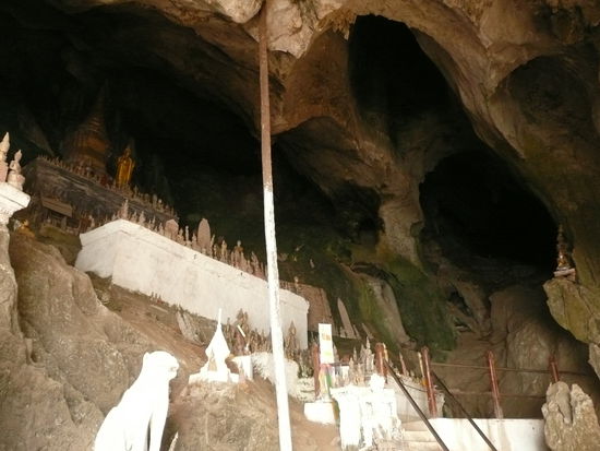 Nach dem sich der Nebel gelegt hatte, machten wir den ersten Halt an einer Hoehle. Eigentlich sind es zwei Hoehlen. Man hat jedoch nicht so viel Zeit. Ich bin trotzem auch zu der zweiten Hoehle gestuermt. Bergauf ueber einige Stufen. War richtig anstrengend.