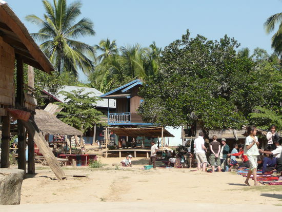 Kurz vor Einbruch der Dunkelheit sind wir dann in Pakbeng angekommen. Die Lodge hat eine eigene Anlegestelle. Leigt ca. 1,5 km vom Drof entfernt.