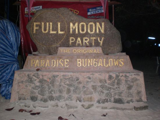 Partylokation auf Ko Phan Gan und Geburtsort der legendaeren Fullmoonpartys! Da mussten wir selbstredend hin und uns die Sache mal genauer Anschauen...Verrueckte Voegel, dermassen laute Technomusik und jede Menge Drogen und Alkohol lassen die Krankenhaeuser auf der Insel und am Festland einmal im Monat zerbersten. Am Suedzipfel der kleinen Insel geht es aber eigentlich jeden Abend zur Sache, so dass wir uns unauffaellig ins Getuemmel stuerzten!!!