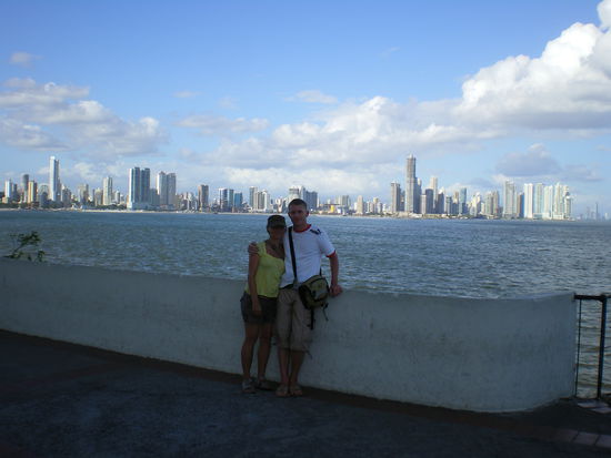 Ein Foto von der Skyline darf natürlich auch nicht fehlen, von dem Aussichtspunkt konnte man auch eine Menge Riesenschiffe sehen die auf die Panama Kanal Durchfahrt warten.