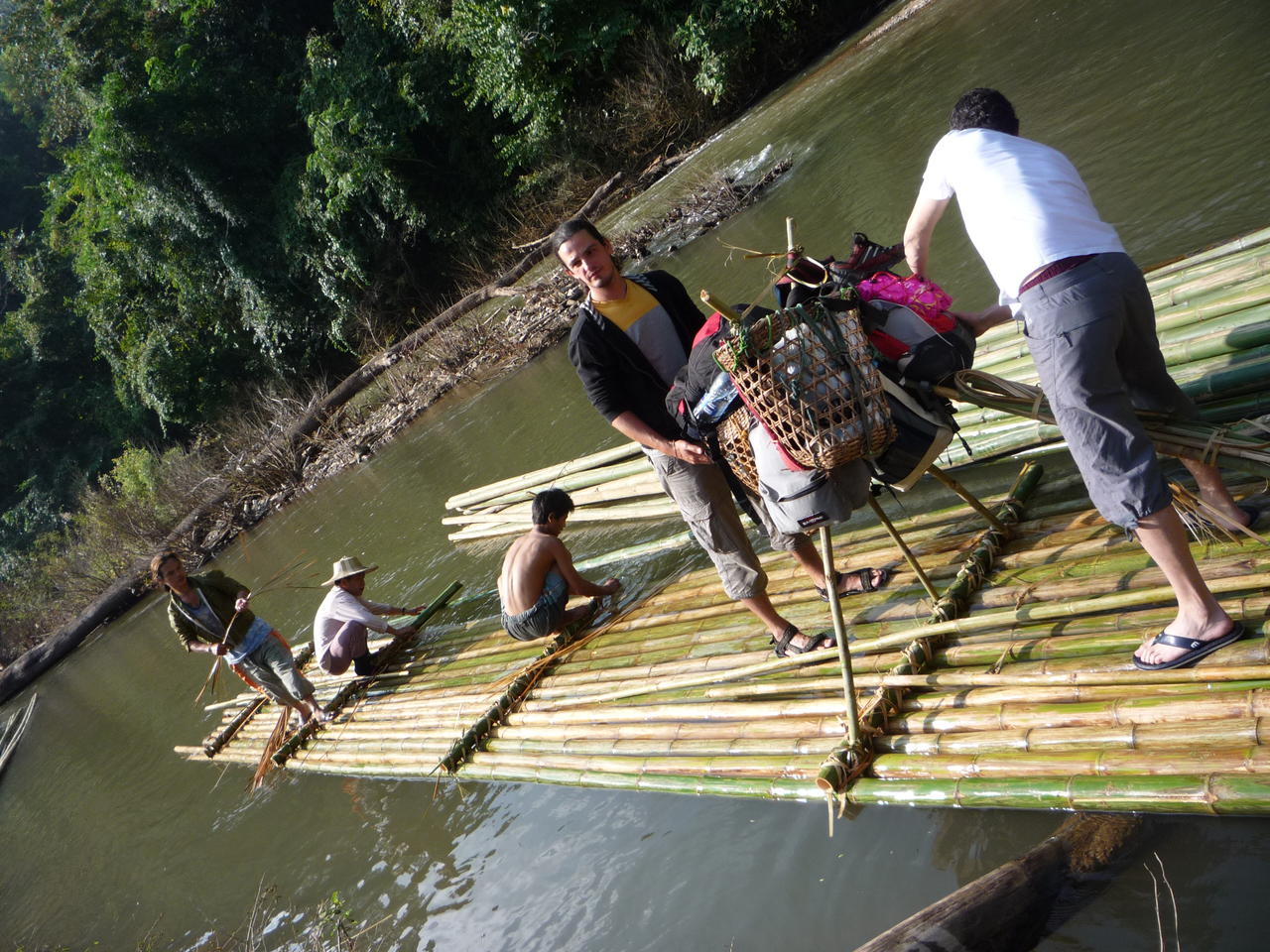 -selber bauen eines Bambusfloss (mit Hilfe der Dorfbewohner)