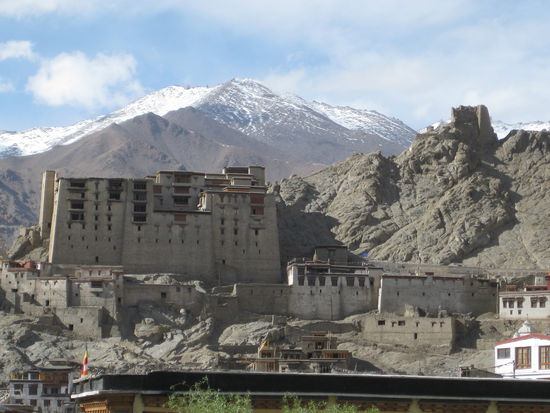 In Leh kommt man sich wirklich dem Himmel ganz nah vor. Nicht das diese alte Stadt so wirklich hoch liegt, sind nur 3500m, sondern die Berge herum mit ihren 6000dern und vorallem der alte Koenigspalst der hoch ueber der Stadt auf einem kantigen Berggrat ruht.