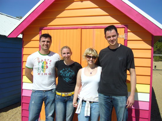 Wow! Das ist wohl das richtige Wort, mit dem man bisher alles beschreiben kann. Aber der Reihe nach. Manu und ich sind aufgrund des schlechten Wetters mit 2 Stunden Verspaetung abgeflogen. Maren und Micha kamen dann mit dem naechsten Flieger einige Stunden spaeter nach. Ich kann jedem nur empfehlen, irgendwann mal mit Singapore Airlines zu fliegen. Ueberragender Service und Verpflegung vom Feinsten. Und auch der Flughafen in Singapur ist ueberwaeltigend. Da ist alles mit Teppich ausgelegt - von der Gangway ueber den kompletten Terminal. Ich frag mich bloss, wie die das sauber halten? Ankunft in Melbourne bei maessigem Wetter, macht aber nix, weil's ja eh abends war. Und seither nur Sonne, was sich auch in leicht geroeteten Hautpartien aeussert. Melbourne an sich: freundliche Menschen, viel gruen, moderne Stadt, viel anzugucken. Gestern haben wir uns dann auf den Weg zur Great Ocean Road gemacht. Echt beeindruckend...