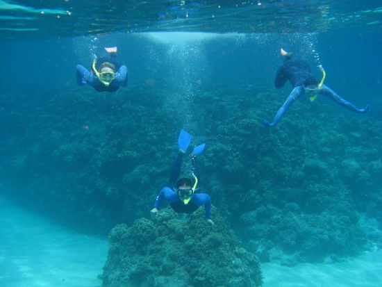 Wir waren uebrigens nicht beim Eisschnelllauf, das war zum Schutz gegen Sonne und Jellyfish. Wobei der Anni Friesinger der Anzug sicher auch toll gestanden haette...