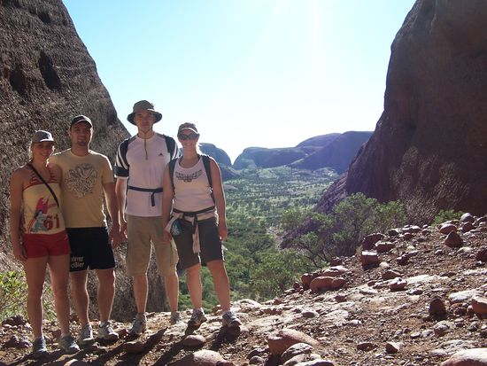 Der Blick ins Innere der Olgas - jetzt natuerlich auch alles gruen. Da unten waren wir dann unterwegs.