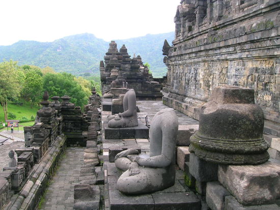 Es gibt hier um Yogyakarta 2 absolute "Must SEE". Den 90 km in Norden gelegenen Borobodur Tempel aus dem 9 Jh. (Buddhistisch und Weltkulturerbe) und den 20 km im Sueden liegenden Hinduistischen Tempel Prambanan. Diese standen heute auf meinem Plan. Aber wie machen? Es gibt natuerlich organisierte Busfahrten die man ueber Travell Agencys leicht buchen kann (1 1/2 Std. Busfahrt nach Borobodur / Eintritt ist extra zu bezahlen und wieder 1 1/2 Rueckfahrt fuer um die 70000 Rupies (5 Euro) und (40 Min. Busfahrt nach Prambanan / Eintritt extra zu bezahlen und dann wieder Rueckfahrt fuer um die 30000 Rupies). Eigentlich nicht schlecht und easy aber es waere sich an einem Tag nur sehr knapp ausgegangen und ich wollt doch unabhaengiger sein und nicht auf Busabfahrtszeiten angewiesen sein - ausserdem wollt ich auch nicht gleich unbedingt mit weiteren Travellern abhaengen. Also traf ich eine GOLDRICHTIGE Entscheidung. Ich mach es komplett individuell an einem Tag. Wie? Nun ich heuerte Krisna an. Krisna hat mich schon am Bahnhof bei der Ankunft belabert und wollte business mit mir machen. Er war nicht aufdringlich, zeigte mir mein jetziges Losmen und hat dafuer auch keine Commission bekommen (hab mit anderen travellern gesprochen die den gleichen Preis wie ich zahlen und komplett individuell angereist sind - also hatte er mein Vertrauen.