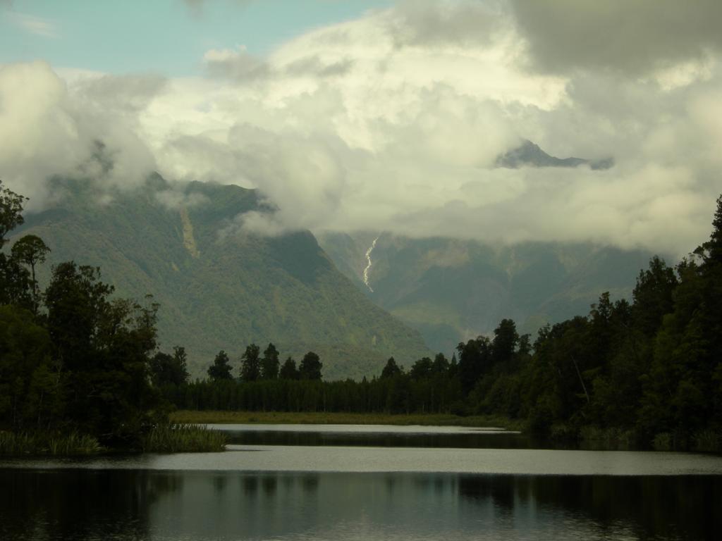 Bald darauf gings per anhalter weiter in das naechste gletscherdorf (Fox Gletscher) welches unglaublich aber wahr, noch kleiner ist. In dem einzigen Backpacker dort habe ich gleich eine bekannte aus nelson wiedergetroffen, die dort jetzt arbeit gefunden hat. Und da hier nun mal ueberall REGENwald ist, war es auch nicht aussergewoehnlich das es nur geregent hat. In den 2h wo es nicht geregnet hat bin ich mit dem Rad zum schoenen lake Matheson rausgefahren und hab einen Spaziergang gemacht.