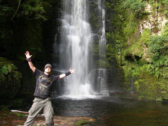 So haben wir mehrere beeindruckende Wasserfaelle, vom Wind schiefgewaschsene Baeume und ein riesiges "Atemloch" des Meeres gesehen. Dieses Atemloch ist ein auf einer Wiese gelegenes 55m tiefes und 200m vom Meer entferntes Loch, das durch einen Tunnel verbindung zum Meer hat und in das mit gewaltiger Kraft die Wassermassen reinschiessen.