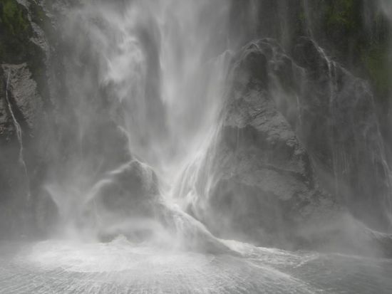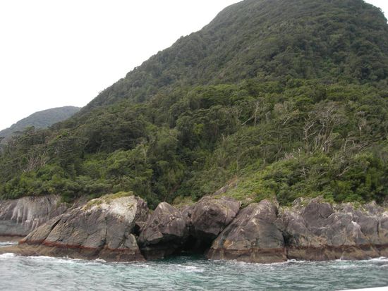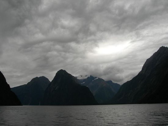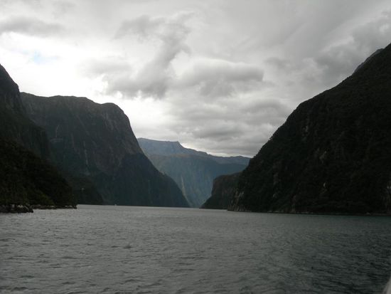 von den Catlins aus ging es ins Fjordland um dort per Boot einen oder beide Sounds zu besichtigen.Die entscheidung fiel uns nicht leicht, da beide wunderschoen und einzigartig sein sollen. Letztendlich haben wir nur den Milford Sound entschieden, dafuer aber mit einer laengeren Bootstour und inklusive Unterwasser observatoriumstour. Es wurde auch wirklich nicht zuviel versprochen. Die Fjorde des Milford Sound beherbergen eine wundervolle landschaft. Tiefgruene Bergriesen mit eindurucksvollen Wasserfaellen und einem sehr ruhiegen Gewaesser (auch bei Seekrankheit geeignet). Das beste ist allerdings das wir das ganze ohne die ueblichen gewaltigen Regenmassen auf Deck des Schiffes geniessen konnten.