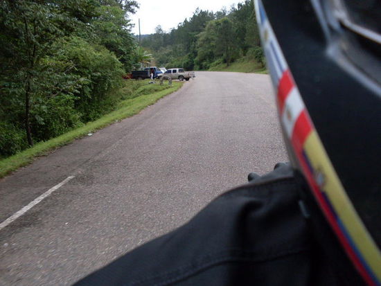 Zwischen Chameleror und San Pedro Sula Polizeikontrolle. Ein junger Schnoesel so um die 23 Jahre gebietet mir Halt. Sein Kollege macht eine Handbewegung zum weiterfahren. Was nun? Ich fahre wieder an und der Junge deutet stehenbleiben. So bremse ich wieder und bleibe ca. 10m weiter stehen. Der junge Polizist laeuft mir nach und sagt Fuehrerschein. Ich gebe ihm den Lappen und er sagt der Fuehrerschein wird eingezogen, bis ich meine Strafe bezahlt habe.
