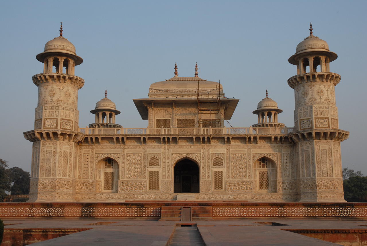Hinterher fuhr ich mit Raju noch kurz zum sogenannten "Baby-Taj-Mahal", einer kleineren Version vom Taj, die mitten im Ort liegt. Hierzu muss ich aus dem Reisefuehrer noch ein wenig Daten heraussuchen.