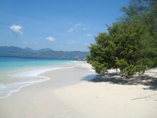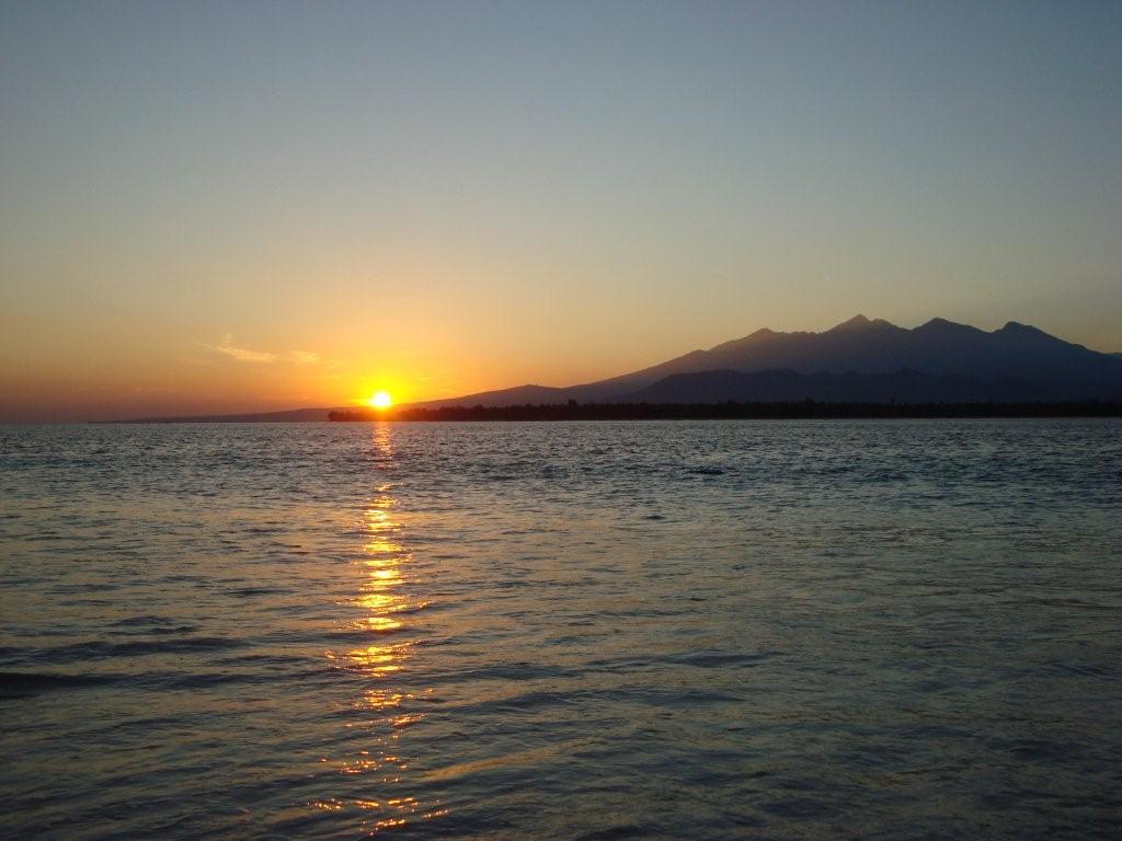 Als letzte Destination unserer Weltreise haben wir uns die winzige Insel Gili Meno ausgesucht. Die Insel ist nur mit einem Fischerboot oder einem kleinen Fährboot zu erreichen, auf der Insel gibt es keine Autos, keine Mofas, keine geteerten Strassen und keine Hunde (also auch perfekt geeignet zum Joggen ). Schnell finden wir unser perfektes Bungalow mit Blick auf den weissen Sandstrand und das türkisblaue Meer, jeden Morgen um 6.30 geniessen wir den Sonnenaufgang vom Bett aus.