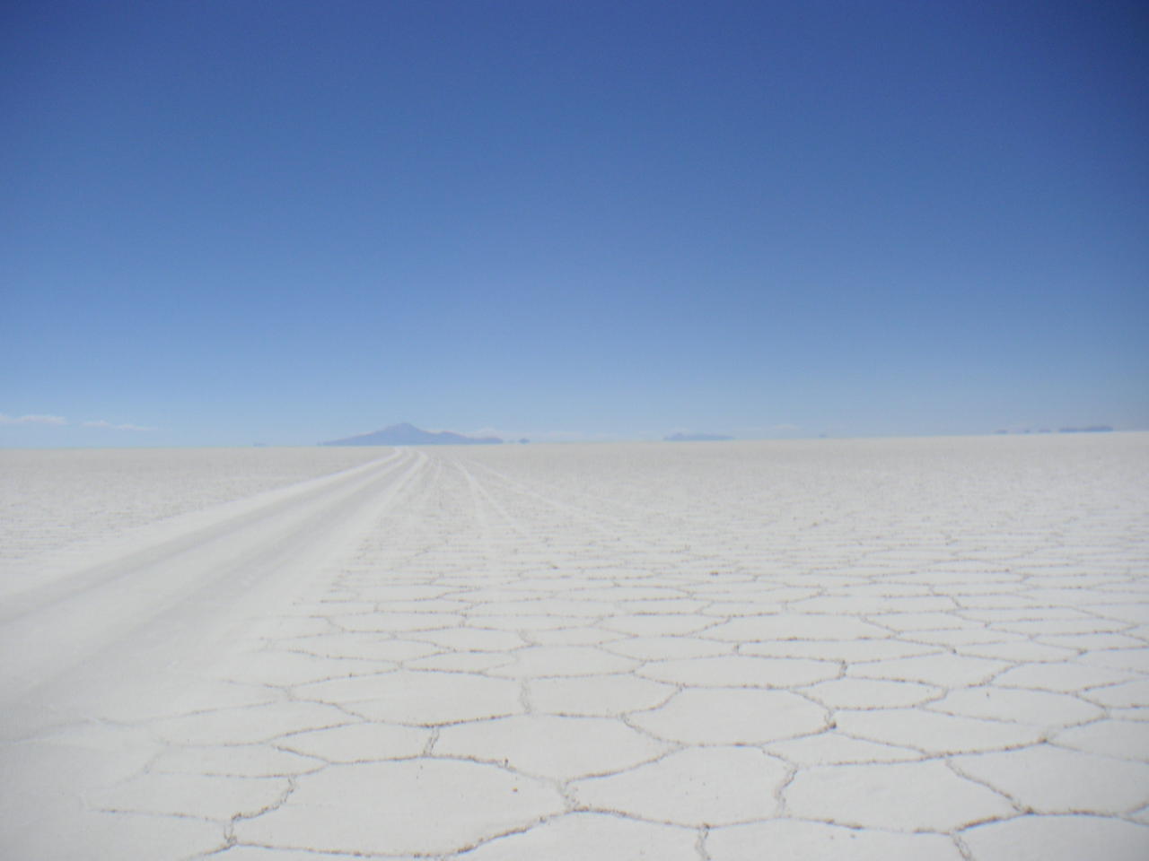 Eine Weite, die man sich kaum vorstellen kann. Und beim Fahren denkt man immer der Untergrund ist glatt, weil es aussieht wie Schnee und Eis, ein seltsames Fahrgefühl, den es fährt sich wie Asphalt.