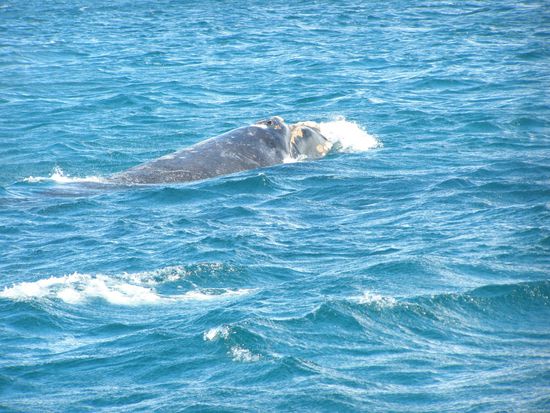 Ziemlich nah und sehr beeindruckend bekamen wir diese sanften Riesen zu sehen, wie man es nur aus Dokumentarfilmen kennt. Das Abtauchen, wo man nur die Schwanzflosse sieht, immer eine Walkuh mit ihrem Kalb bis zu einem Sprung aus dem Wasser, wenn man bedenkt wieviel Tonnen das bewegt werden(40-60 t). WAU !!!! Sicher eins unserer Highlights