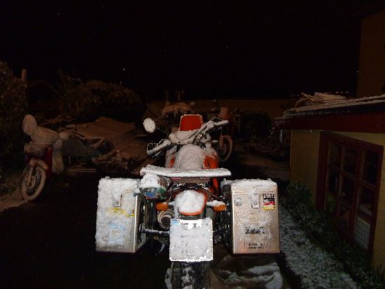 so sah es dann ein paar Stunden später aus, kaum zu glauben, nur Verrückte scheinen hier um diese Jahreszeit mit dem Motorrad unterwegs zu sein.