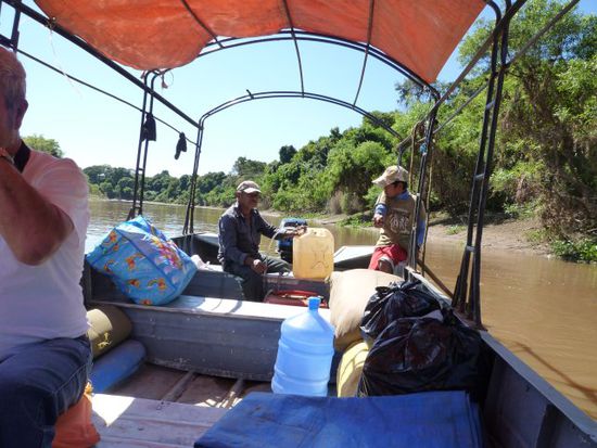 Die Tour war ganz bolivianisch organisiert, es klappte alles, aber es schien eher Zufall zu sein. So war am ersten Tag schon klar, das der Motor mehr Sprit braucht, aber umkehren bzw. mehr organisieren, das war erst am letzten Tag das Thema, als nicht ganz klar war, ob wir es bis zum Hafen zurück schaffen. Es waren nicht viele Leute auf dem Fluß unterwegs, aber unsere Guide schaffte es immer zur passenden Zeit auf welche zu treffen. Einmal bekamen wir 3 Liter Benzin, und als der Motor/Sprit endgültig aus war, trafen wir auf Arbeiter am Ufer, die zwar kein Benzin übrig hatten, uns aber anhängten und uns so bis zum Hafen mit schleppten, Also alles kein Problem. Wir denken doch noch immer zu deutsch.