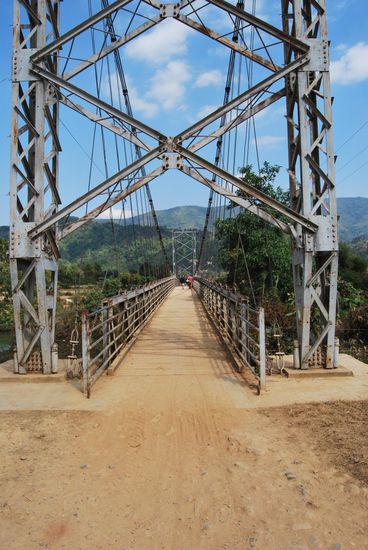 Ueber eine nette kleine Bruecke kamen wir in ein Dorf...