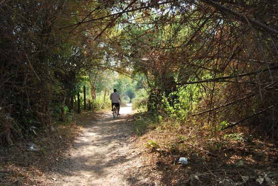 Gestern (Freitag) haben wir uns also fuer Eur0,80 auf Don Det ein Rad geliehen.
