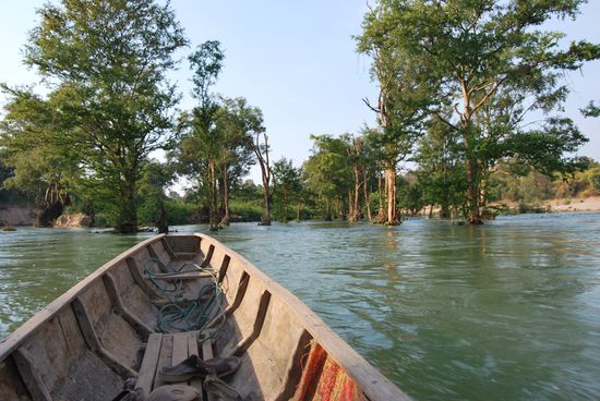 Man mietet sich ein Boot faehrt durch traumhafte Landschaften, durch Mangrovenwaelder und wird nach ca 20 min auf einem kleinen Felsen abgesetzt, von dem wir dann sicherlich 40 mal Irrawady Delfine gesehen habe.