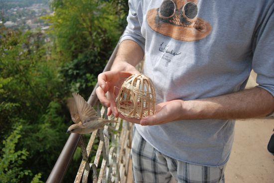 Bei einer alten Dame haben wir unsere Opfergaben gekauft, ein kleiner Vogel und ein paar Bluemchen! Soll grosses Glueck bringen den Piepmatz freizulassen!