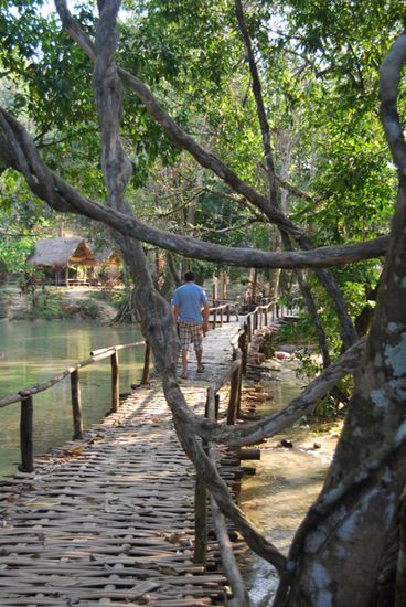 Hungrig haben wir uns ueber eine kleine Brucke zu einem Restaurant gemacht und lecker fuer 6 Euro gegessen.