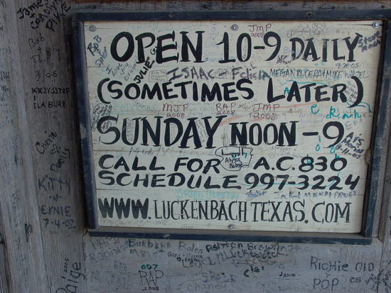 Ein absolutes muß für jeden Countrymusicfan und Biker ist Luckenbach, mit seinen 3 Einwohnern, am Wochenende. Hier treffen sich verschiedene Musiker zu einer Livesession. Tolle Stimmung garantiert.