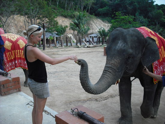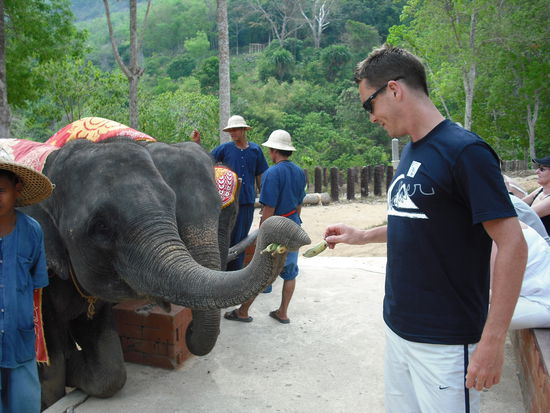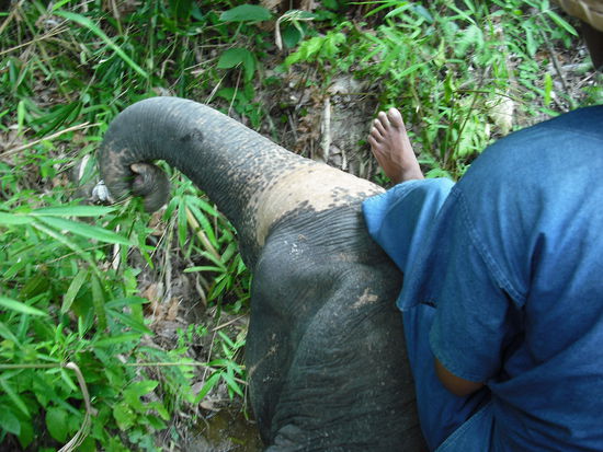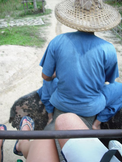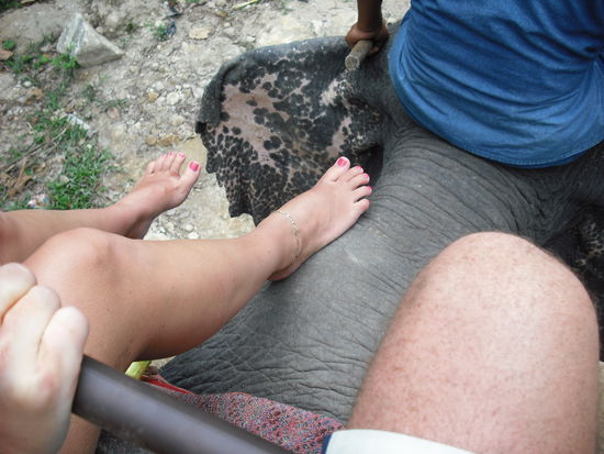 Einen schoenen Ausflug haben wir allerdings gemacht zu einer Elefantenfarm, das hat uns beiden sehr gefallen..wir durften 45 Minuten auf dem Ruecken eines Elefanten durch den Dschungel stampfen.