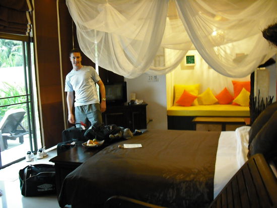 Ausserdem haben wir maaaaal wieder ein Hot Tub, eine Rainforest Dusche und nicht zu vergessen ein riiiiiesiges Bett mit Mueckennetz...einfach atemberaubend...das kommt uns gerade recht nach Staedten wie London,Hongkong und Bangkok.....einfach mal Ruhe und Frieden.........und in diesem Sinne..geniesst die Fotos und ich schicke euch Waerme aus Thailand..