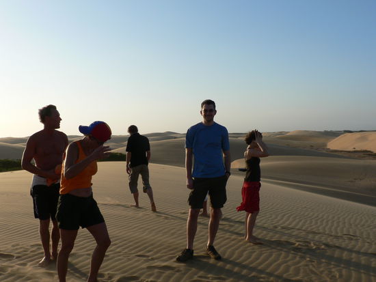In Coro kam ich dann durch Zufall in einer sehr netten, idyllischen Posada mit Hängematten und kleinem Garten an, wo auch noch 6 weitere Deutsche saßen und Doppelkopf spielten. Also gab's zur Abwechslung ein Stück Heimat. Sehr angenehm! Irgendwie haben die für den fruehen Abend einen Ausflug zu den Sanddünen organisiert und da konnte ich mich gleich anschliessen. Die Sanddünen sahen etwas aus, wie die auf Gran Canaria und von den berüchtigten Raeubern, vor denen der Reisefuehrer warnt, war nichts zu sehen. Am Abend wurde wieder Doppelkopf gespielt und (sehr gutes) venezolanisches Bier getrunken.