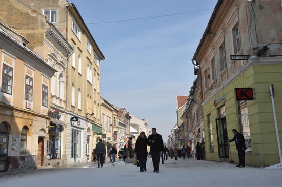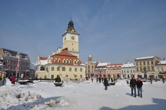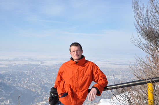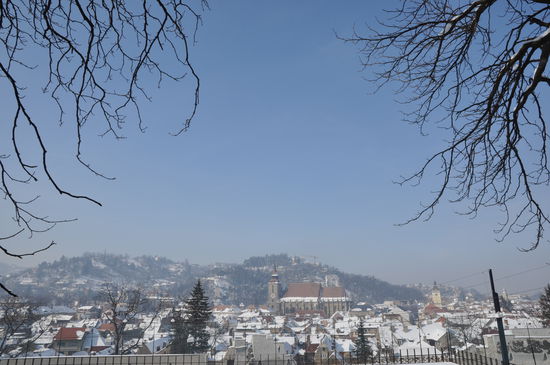 In Brasov selbst konnte ich dann ob des leider diffusen und durch leichten Nebel intensivierten Nachmittagslichtes keine Bilder machen, und daher habe ich mich entschieden einen kleineren Berg zu erklimmen. Also bin ich durch den verschneiten Wald gelaufen und habe mich etwas auspowern koennen, was nach einer laengeren Fahrt auch richtig angenehm und, fuer mich zumindest, entspannend ist. Auf dem Gipfel habe ich einen jungen Mann meines Alter kennengelernt, einen Rumaenen, mit dem ich mich lange unterhalten habe. Er war recht gebildet, sprach gut englisch und wusste geschichtlich sehr gut Bescheid. Allerdings habe ich mich gewundert, dass er wohl auch ein Holocaustleugner ist, was aus einigen seiner Auesserungen deutlich wurde. Ich war etwas verwundert und auch betroffen, mir Sicherheit deshalb, weil ich erst vor einigen Tagen in Auschwitz war. Ich werde mir zu diesem Thema in Rumaenien noch mehrere Meinungen einholen, aber was mir generell aufgefallen ist, und das bezieht sich auf meine persoenlichen Erkenntnisse aus Zwiegespraechen: Antisemitismus scheint noch immer ein Thema unter Menschen meines Alters zu sein, und das sowohl in Polen als auch in Ungarn.