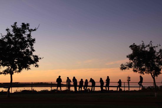 In Port Hedland dann haben wir uns ca. 5 oder 7 Tage aufgehalten. Inzwischen reisen wir zu fünft. Martin, aus Dresden hat sich uns angeschlossen. Mit ihm bin auch im Karijini NP klettern gegangen. Port Hedland ist keine besonders schöne Stadt, viel Industrie, vorallem Eisenerz -und Salzabbau. In der Woche haben wir soviele Frachter im Hafen einlaufen sehn, stündlich. War interessant zu beobachten.
